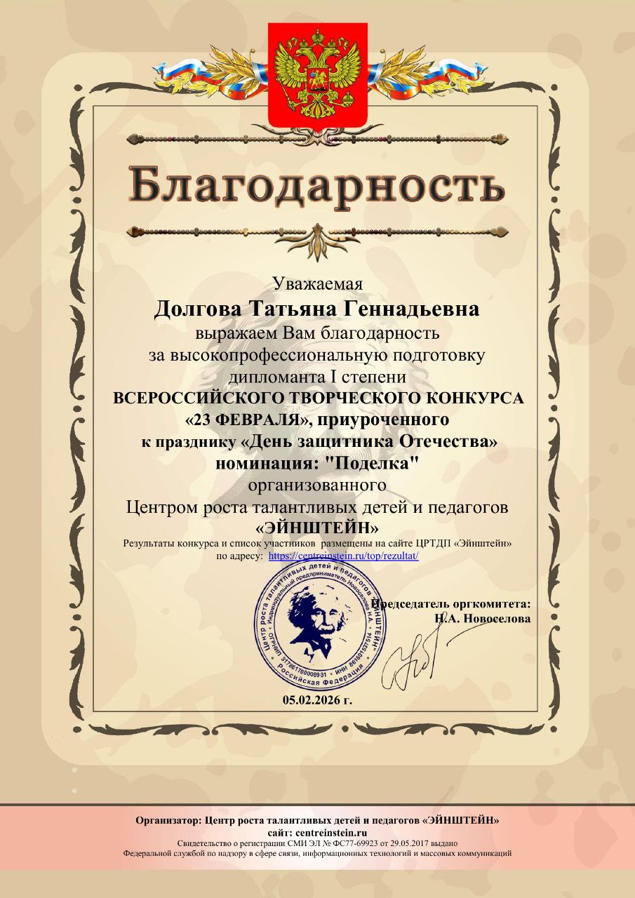 Персональный сайт воспитателя Долговой Татьяны Геннадьевны