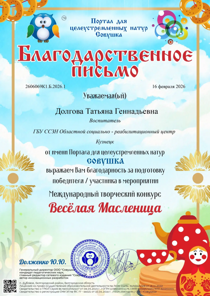 Персональный сайт воспитателя Долговой Татьяны Геннадьевны