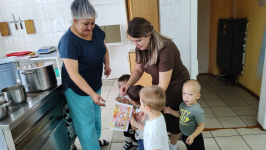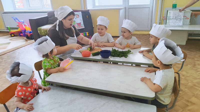 20 октября отмечается "Международный день повара". Ребята Кузнецкого филиала познакомились с древней профессией, без которой ни обходится ни один день в нашем учреждении. Вместе с воспитателем Долговой Татьяной Геннадьевной, дети посетили пищеблок и увидели как, из чего и в какой посуде готовят наши повара. А так же поздравили их с профессиональным праздником. В группе ребята продолжили изучать профессию повара, и стали настрящими юными поварятами - приготовили витаминный салатик из овощей. Также в течении дня ребята с удовольствием раскрашивали картинки с изображением повара, беседовали о проведённой экскурсии, учили песенку поваренка.
